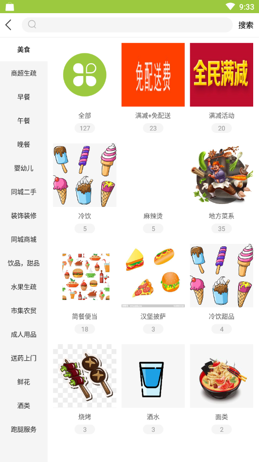 涵盖商超生鲜、早午晚餐配送
