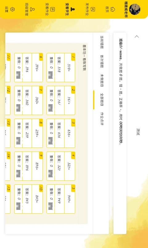 实时查看学员作业完成情况,包括正确率、用时等数据。