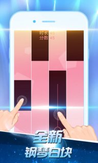 按倒下的块就可以播放美妙的音乐,瞄准黑白两键快速移动的钢琴块,