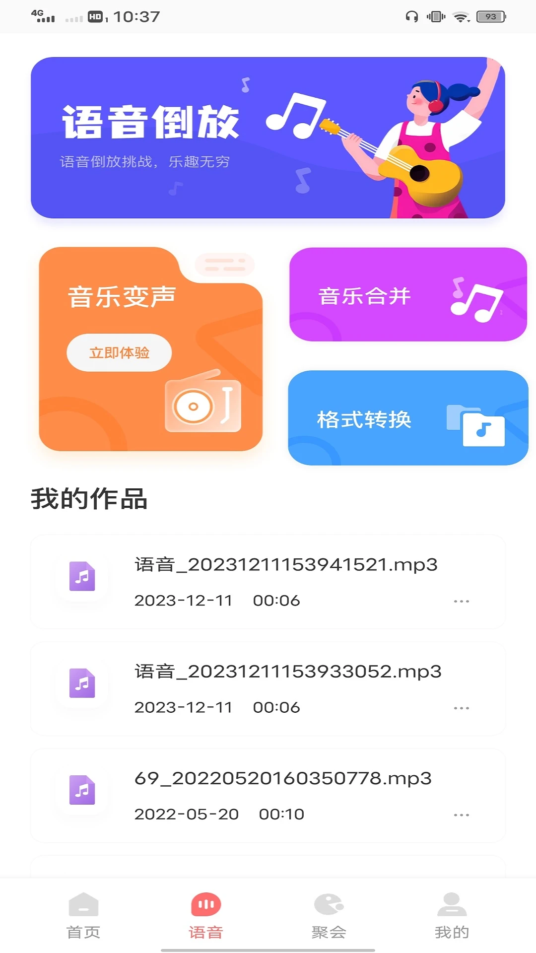 •语音:可进行语音倒放、音乐变声、音乐合并、帮助我们进行聊天