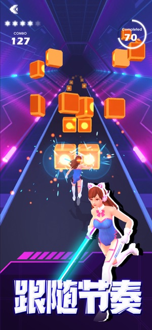 游戏玩法总体来说感觉不能算是音游,更像跑酷类游戏,音乐选取级,原来以为是像VR的光剑那样的,但实际上跟想法差的比较大。比较中规中矩叭,游戏没有难度,没有强制性关不掉的广告,还可以。