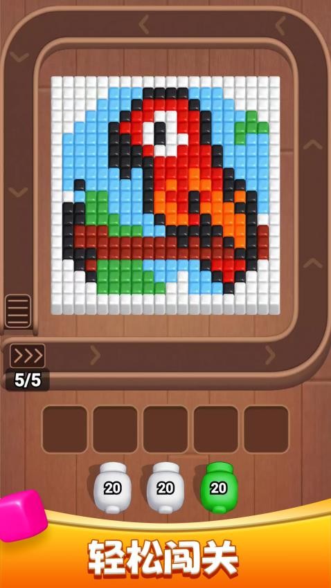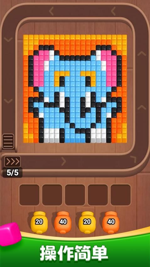 这是一款轻松解压的炮台射击消除游戏。每一关都由方块组成精美图案,你只需点击炮台,发射子弹消除方块,将所有方块消除即可通关。游戏操作简单、节奏轻快,上手零门槛,每一关的消除将给你带来满满的成就感,碎片时间随时畅玩,越消除越解压,来试试看吧!