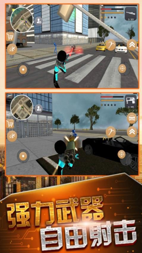 在街头穿梭,完成危险的任务,运用绳索力量、枪支、车辆和超能力发动袭击,击败匪徒。这款开放世界的让你可以随心所欲地战斗。进入邪恶都市,履行火柴人英雄职责:寻找隐藏的战利品,在混乱竞技场中战斗,并在中获胜。无论是阻止帮派活动,还是驾驶汽车逃跑,你的目标都是从危险的匪徒集团手中夺回控制权。