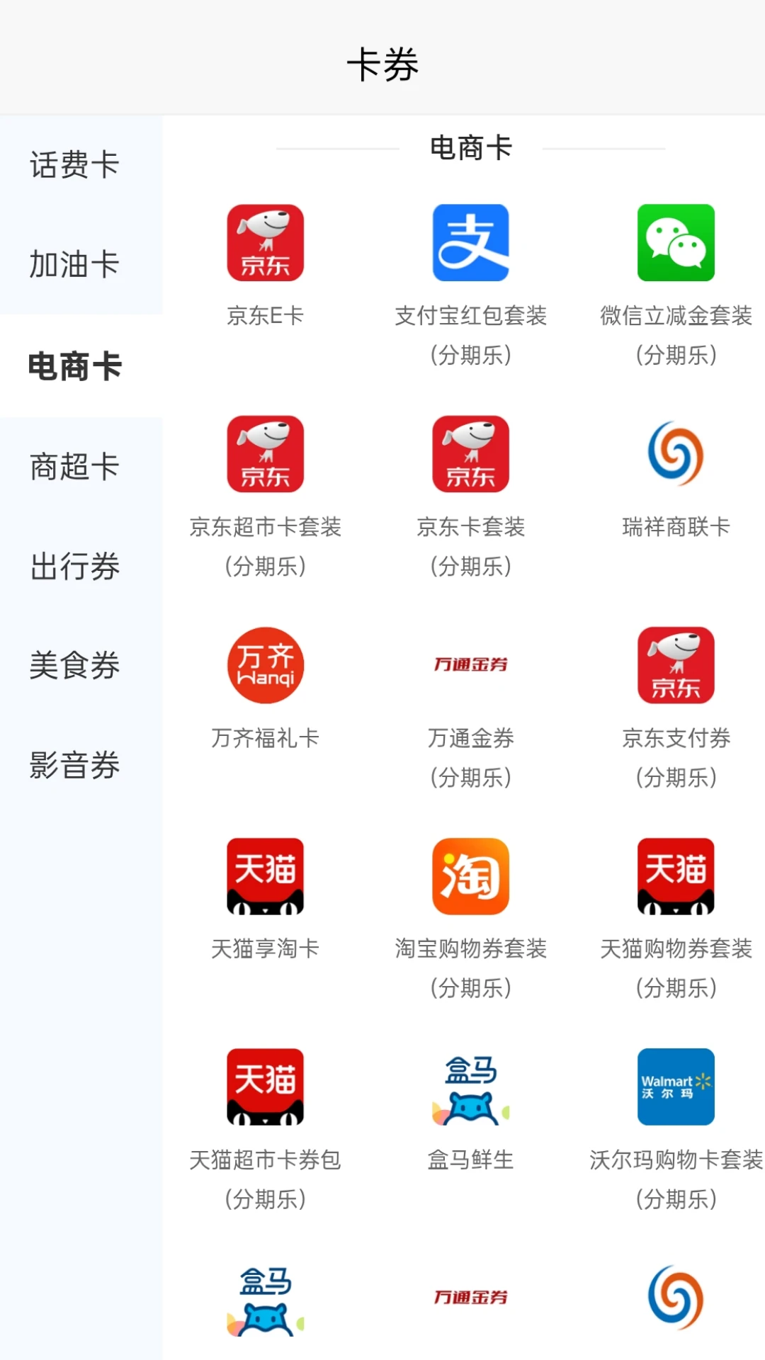 第2步:点击电商卡,选择京东e卡