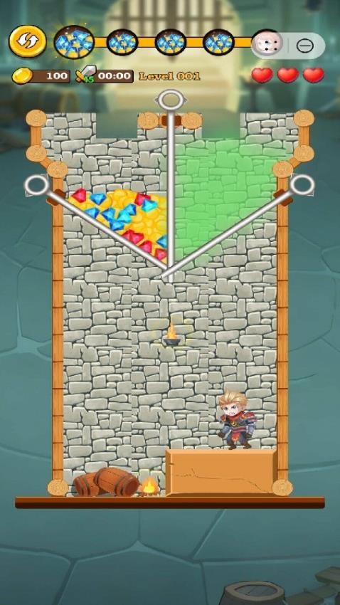 勇者的宝藏最新版是一款充满乐趣的休闲益智游戏。玩家将沉浸于精彩的挑战过程,通过解决各种谜题来获得成就感。游戏要求玩家仔细观察别针布局,迅速收集关键信息,从而找到最佳解决方案。随着关卡推进,玩家还能发现隐藏细节,收集黄金钻石,快速完成任务并赢取丰厚奖励。对冒险解谜感兴趣的玩家,这款游戏绝对值得一试!