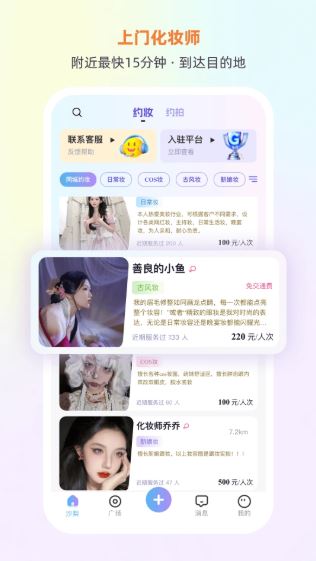 支持上门化妆的功能,利用这个功能省去奔波美容院的时间,方便省心。