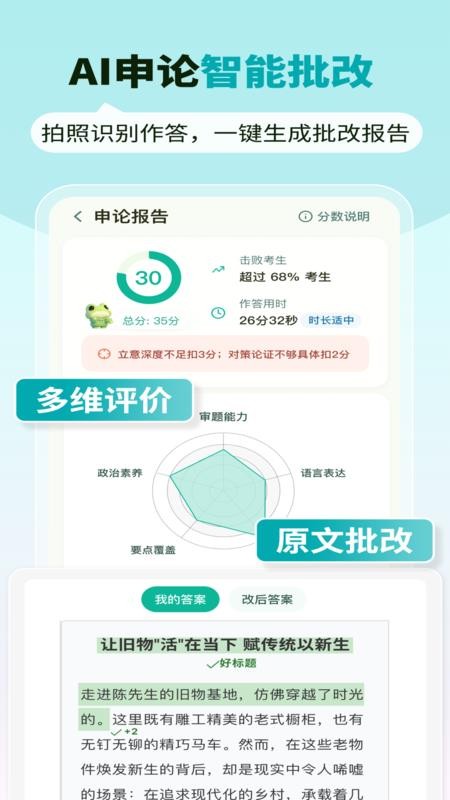 支持申论手写内容智能识别,一键拍照即可获取专业批改建议。