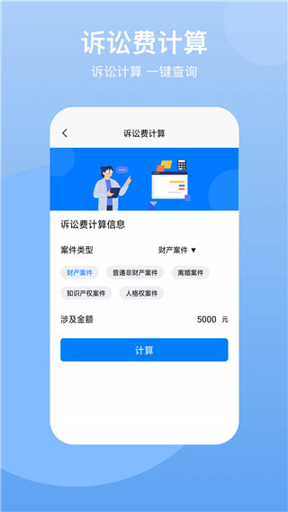 涵盖多种案件类型的诉讼费计算,快速估算诉讼成本。