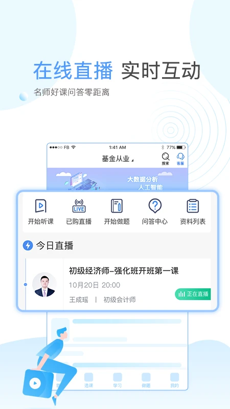 云校学堂主要覆盖会计类、金融类、工程类、公务员事业单位、医学类、八大员等众多热门考试课程。 一站式刷题、听课,满足数百万职业考生需求,真正做到随用随学。 【题库内容】 会计类:初级中级会计、注册会计师、初级中级经济师、税务师、审计师、初级管理会计师; 金融类:基金从业,证券从业,银行从业,期货从业,银行职称考试; 工程类:一级建造师、二级建造师、造价师、注册造价工程师、注册安全工程师、注安、电气师、注册电气工程师、消防工程师、一级二级消防工程师、测绘工程师、计量工程师、城乡规划师、土地登记代理人、房地产经纪人、房地产估价师、注册咨询工程师; 医学类:执业药师、健康管理师、主管护师、初级护师、护师资格; 八大员:资料员、材料员、土建市政装饰施工员、质量员; 教师类:幼儿中小学教师招聘笔试; 人力资源:一级人力、二级人力、三级人力、四级人力资源; 外语类:英语四六级考试; 计算机类:计算机二级考试; 【课程视频】 1.智能题库精准押题,考试重点难点逐个击破; 2.直播视频课程刷题班、冲刺班、押题班面面俱到,智能题库精准押题;