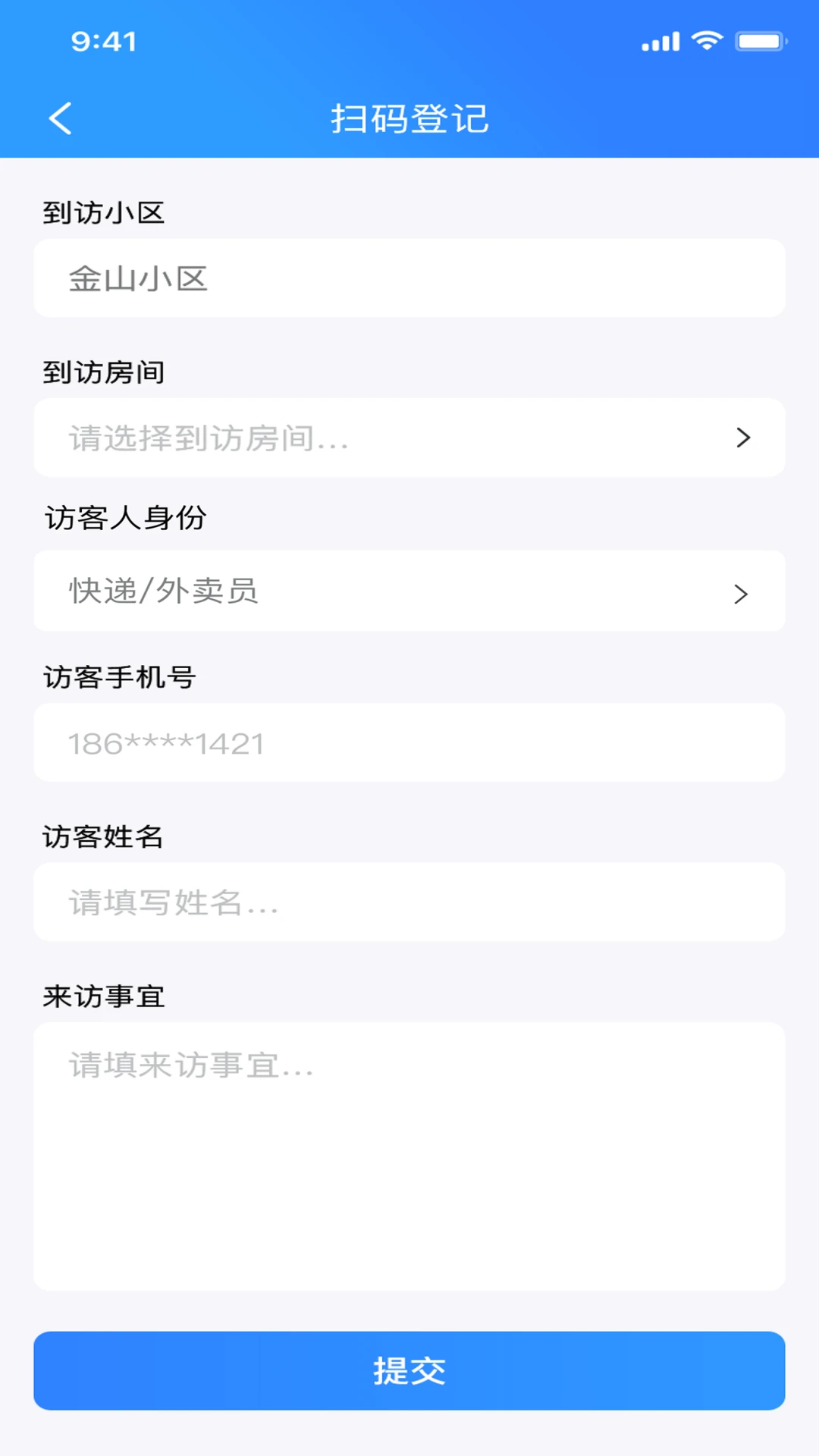 访客登记功能:访客可通过手机APP扫描二维码发起访问申请,简化传统登记流程。