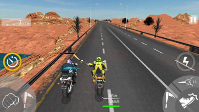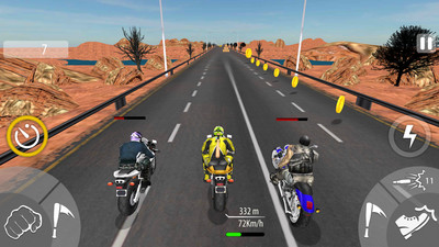 暴力摩托2021手机版是一款经典摩托竞速游戏的手机移植版本。很多8090的玩家都玩过电脑上的暴力摩托游戏,今天为大家带来手机版本,让大家在手机上就能够体验到经典的竞速玩法。玩家驾驶摩托,超越一个又一个对手,没有任何的规则限制,只要获取第一名的成绩即可。你可以攻击其他玩家,影响他们的速度,甚至直接淘汰他们。