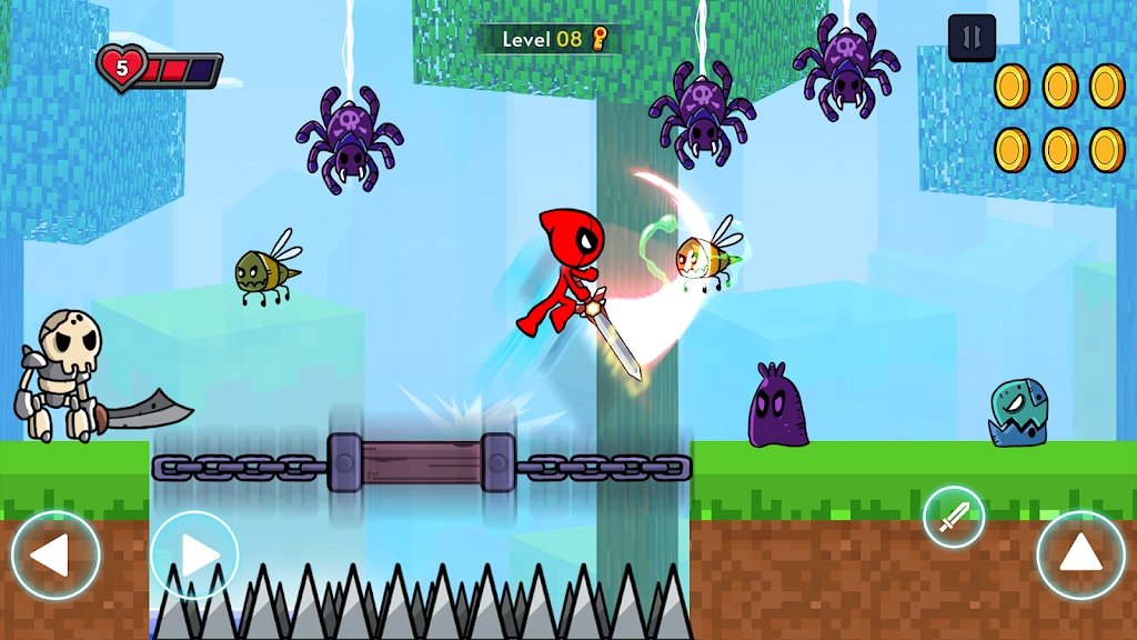 1、主角是通体漆黑的火柴人画风,其它的敌人除了boss外也都是以火柴人的画风设计。