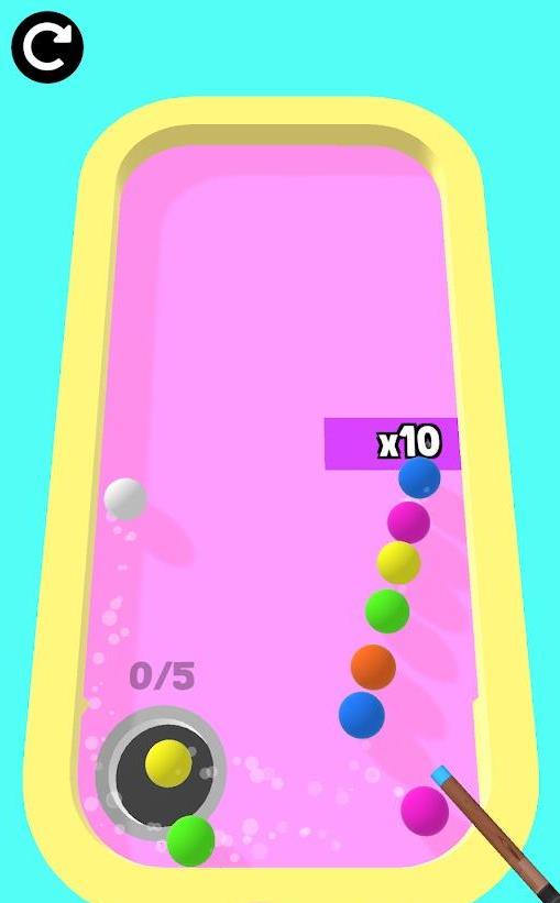 1、让这几个小球统一的穿过台球桌子上唯一一个的小空洞。让他们一个一个的回家。
