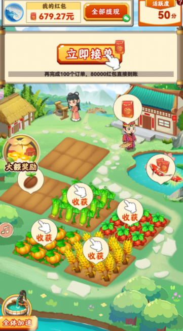 3、增强田园等级解锁道具帮助赚取收益,田园自在休闲赚红包!