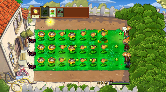 2、不同的难度,开动你的脑筋,使用各种道具,解锁威力巨大的植物助你完成关卡