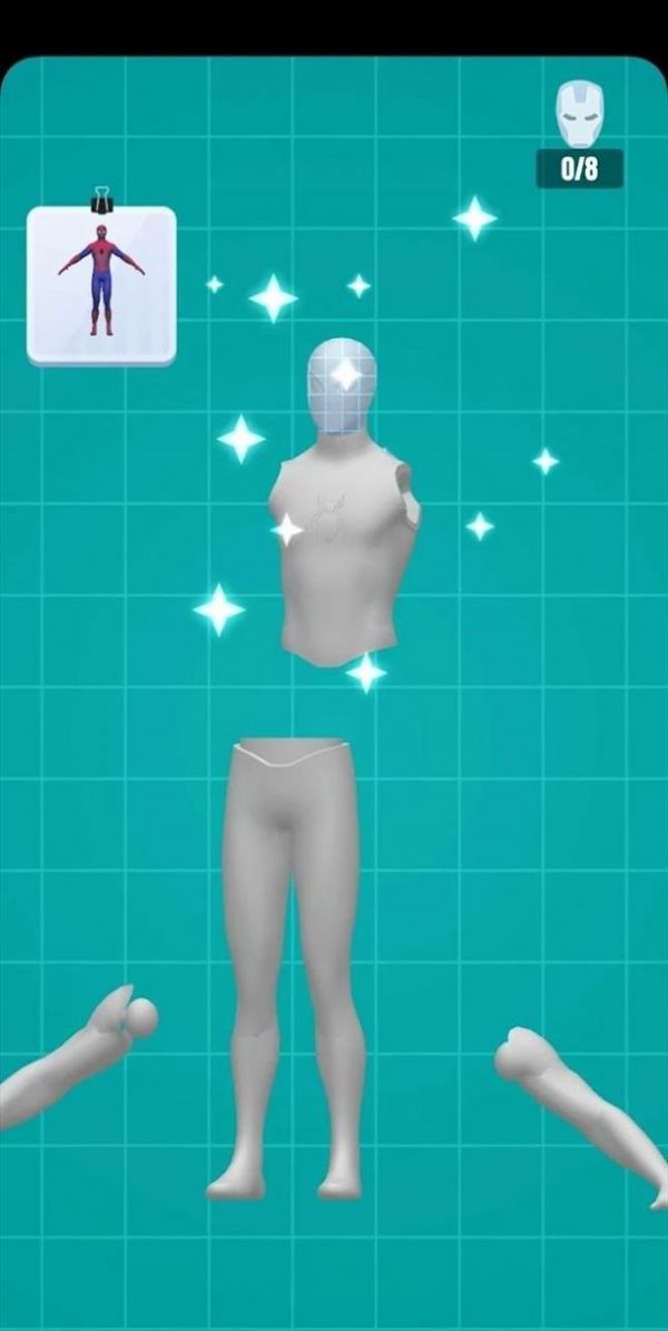 1、点击开始后,拖拽公仔的四肢并拼装到正确的位置。