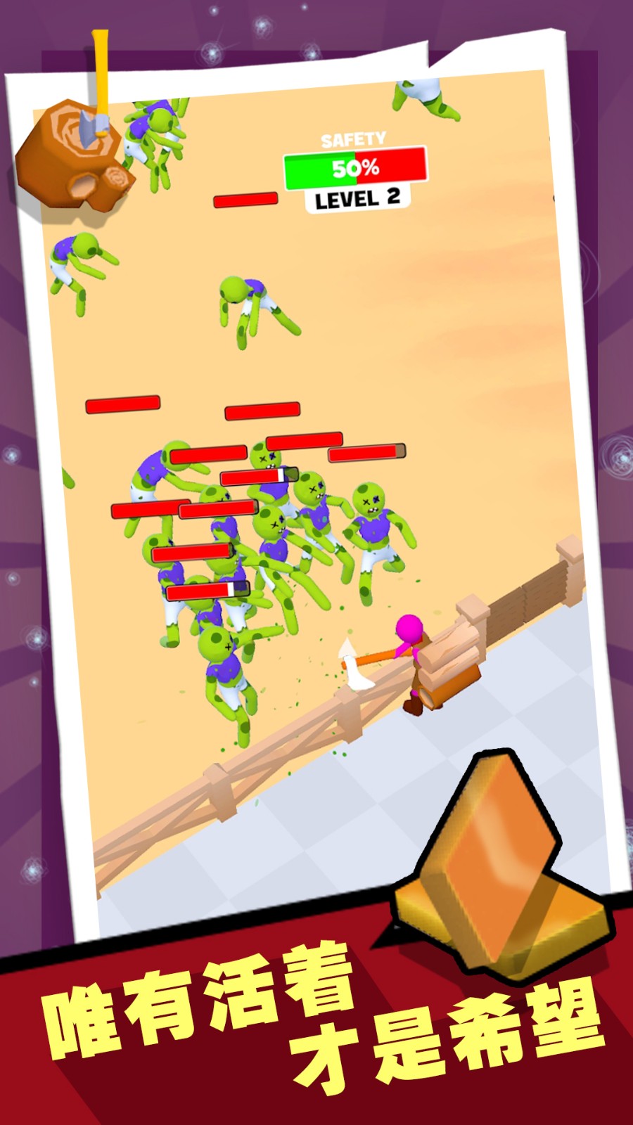 2、生存和与僵尸作战,建立你的营地,并在僵尸的浪潮中生存下来。