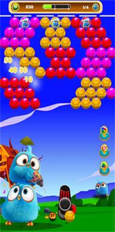 2、有趣的泡泡射击挑战,清新可爱的卡通画面,超多可爱的愤怒小鸟。
