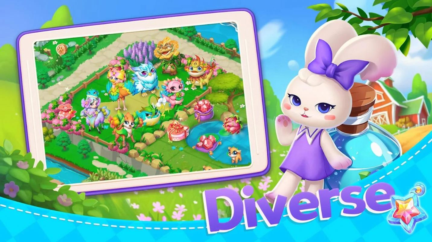 合并幻想神秘花园游戏是一款合成建造模拟游戏。通过合成的方式来建造我们的乐园,将不同的元素合并在一起,用来解锁各种不同的建筑物,这个小岛世界也会因为我们的建造而变得更加的精美,不仅仅是建筑,还能合成出各种可爱的宠物,让它们与你一起在这个小岛生活吧!