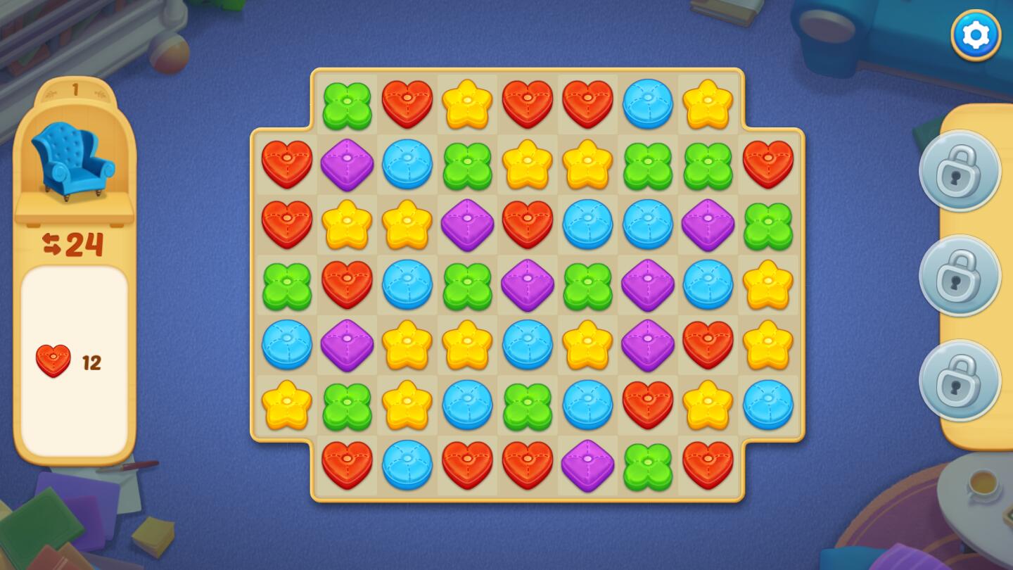 简单的游戏玩法操作,玩家要将破旧的房屋进行翻新,完成不同的任务有机会解锁新的家具;