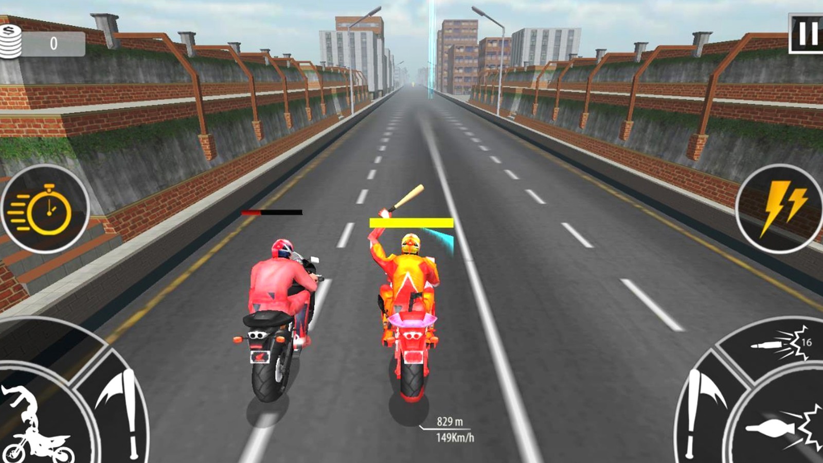 《暴力摩托竞速》是一款相当有趣的摩托车竞速类游戏。与经典的暴力摩托一样,你可以在游戏中与其他车手进行对抗,无论是速度上的对抗,还是拳脚上的对抗。暴力摩托竞速有更加丰富的武器种类,经常让人只想打人不想竞速。游戏有着不错的画面,加上经典的竞速对抗玩法,是喜欢暴力摩托的玩家不可错过的游戏。