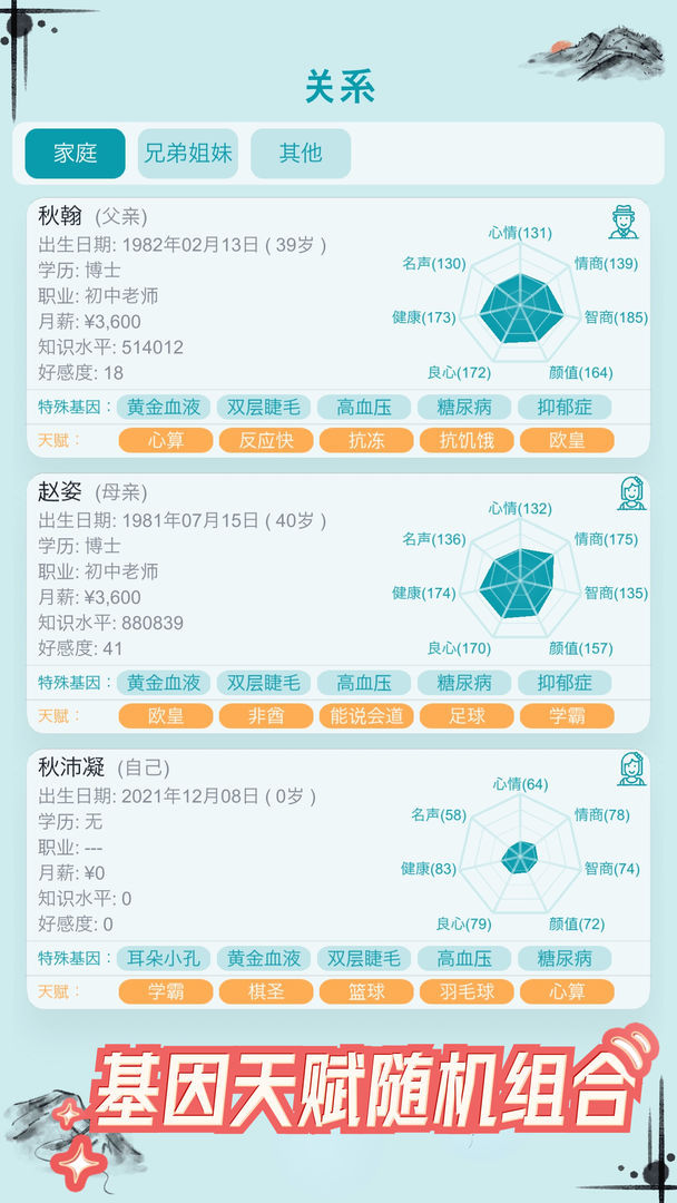 「结婚生子」在这里只要你有钱,你想生多少就多少!你爱怎么培养就怎么培养!还有各种随机事件让你惊喜不断!