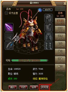 武将馆系统,4级开放。游戏中的核心系统之一,顾名思义,水浒三国玩什么,玩的就是副将。想要吕布吗?想要貂蝉吗?看这里吧。