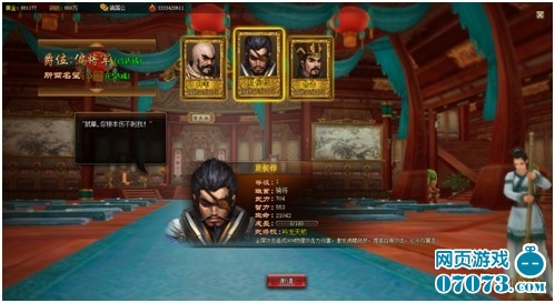 1.通过武将NPC,或者武将面板中的“武将馆”进入到武将馆中。