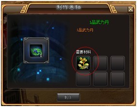 制作丹药,需要材料。背包中有丹药卷轴后,可以双击丹药卷轴,或单机点使用,打开制作面板。如下图: