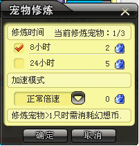 宠物每1级就有1个加点。可以根据完成类型加点。这里主要说明宠物升级方式:宠物修炼。宠物最短可以挂机修炼8小时,又不影响宠物行动。强烈建议平常上线多注意下宠物修炼。你会发现宠物等级很快就冲上来。