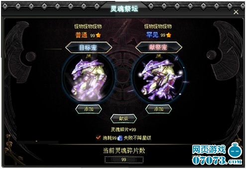 当然,宠物献祭是有风险的。献祭成功,目标宠物的星级将提高一星,失败则下降一星。宠物星级有其品级的最高上限。献祭时宠物星级不能超过宠物品级的上限星级。