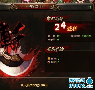 一骑当千!第一天中能上15以上就是拉开差距的关键了:个人建议武将选择,要2个输出。不推荐用荀优因为他输出比较少,个人建议选择大乔, 第15层以后可以选择他,因为要在30秒内杀了10层的BOSS可以直接跳到15,他的技能是回血会耽搁几秒,如果攻击高的话无所谓!