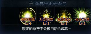 4.命符锁定:当你想保留某个命符时,可以将其拖动到命符锁定栏,那么一键合成就不会合成该命符,如下图: