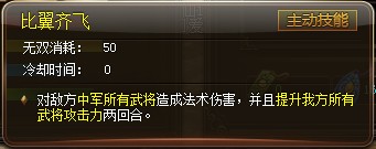 特点:攻击中军并提升我方所有武将攻击力两回合。如同名字所述,周瑜的绝技特效是两只白色飞鸟俯身攻击敌方中军武将,效果华丽,伤害可观,不过提供的攻击加成需要后续两个回合有足够的输出时间才能发挥效果,因此武将的搭配很重要。