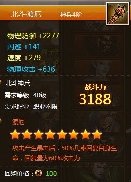 四阶16星攻击产生暴击后50%几率回复自身生命,回复量为60%