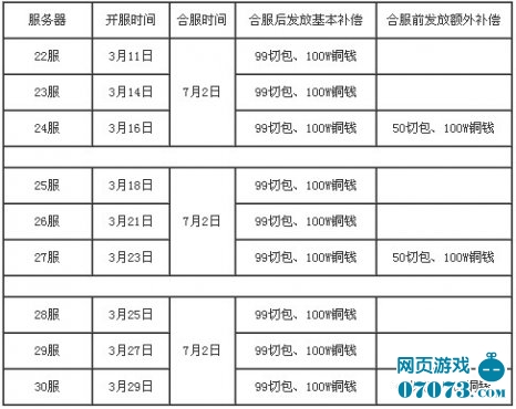 神将三国双线22-30服7月2日10:00-13:00合服公告