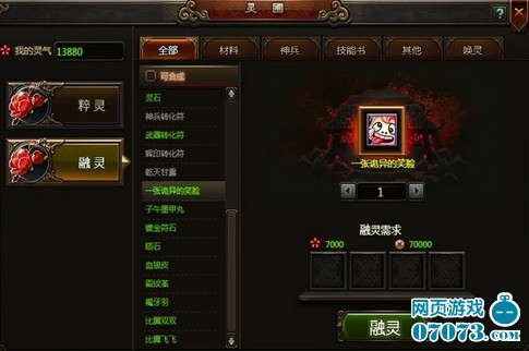 粹灵可以从不需要的道具身上粹取灵气,融灵则通过消耗灵气以及部分材料,来获得新的物品。