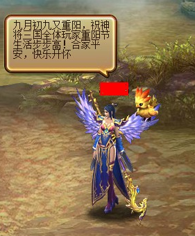 【活动内容】:活动时间内,各位玩家在游戏内对各位玩家传达游戏祝福,并截图发送至论坛专帖中回复,即可获得超值重阳祝福礼包。