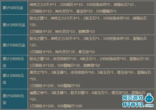 【活动内容】:累计充值达到不同的额度,每个阶段都有充值大礼包倾情相送!