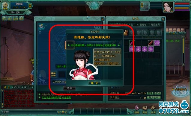 当然,法宝炼制有一定的成功率,无论炼制成功还是失败时,所有的法宝材料将消失;炼制失败时,装备不消失。