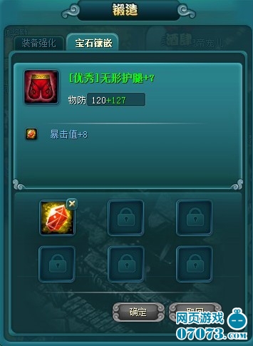 镶嵌宝石可以提升装备某一方面的特殊属性。