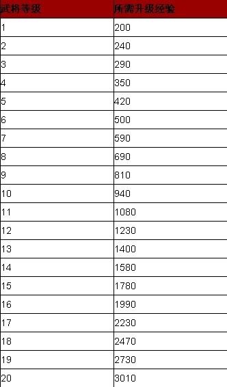 神马三国武将等级对应所需的经验,神马三国武将升级攻略。