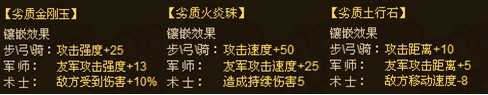 镶嵌的效果,上图已经明确说明,根据宝石的品质增益会随之提高,随着兵的升级,也会提高宝石的镶嵌能力。