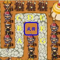 1-5关,可以采用“车轮战”,故名思议,就是敌军路过的兵,我们的守军将士要轮番揍他。这样的话留下2个将领的位置,其余的位置都造上1级的小兵(步,骑,弓随机,但是要能保证他能出手即可)这样“一字”排开,然后根据关卡的难度轮番提升自己的士兵等级。