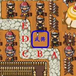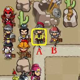 可以看到武将摆在这里,可以攻击到周围3个位置;