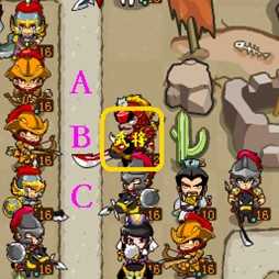 在这说下攻击的位置,位置的好坏决定了,这个将士在这次防守中所立下的功劳,也可以最大化DPS。以攻击范围50为例做出的攻击位置摆放优势图。字母代表将士可以攻击的位置。