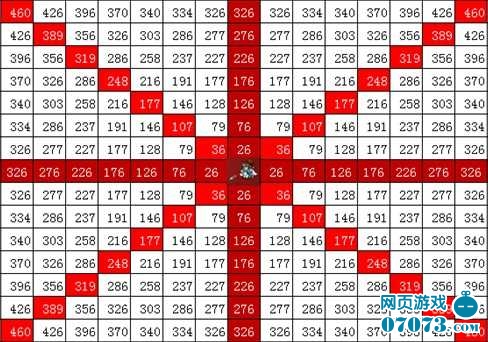 攻击的范围越大,走过的兵在攻击范围内就停留的时间相对较长。攻击的次数就比攻击范围小的攻击的要多。下面附送一个详细的攻击范围图一格为50,攻击到此中心点为25,保守计算为50/2+1):