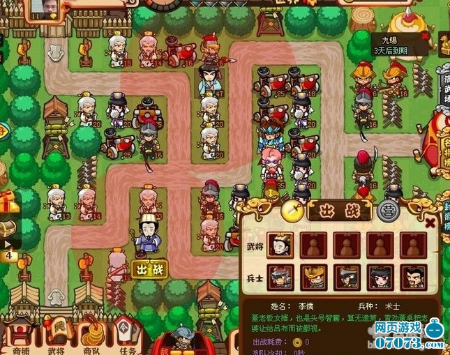 布阵中将以弓兵为主、骑兵为辅,以达到最大化加成伤害(步兵再一次被无情的无视了,谁叫那些大大们都喜欢骑马耍帅。。。!)