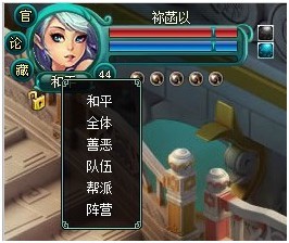 在神魔仙界里,共有六种攻击模式(和平、全体、善恶、队伍、帮派、阵营)如下图: