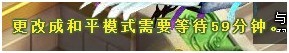 可以看出,除了和平模式,其他的五种模式都可以攻击指定一部分的其他玩家。那么切换到这些模式的时候,想要再切换回和平模式则需要一个小时的时间间隔,而切换到其他攻击模式则无时间限制。如图:
